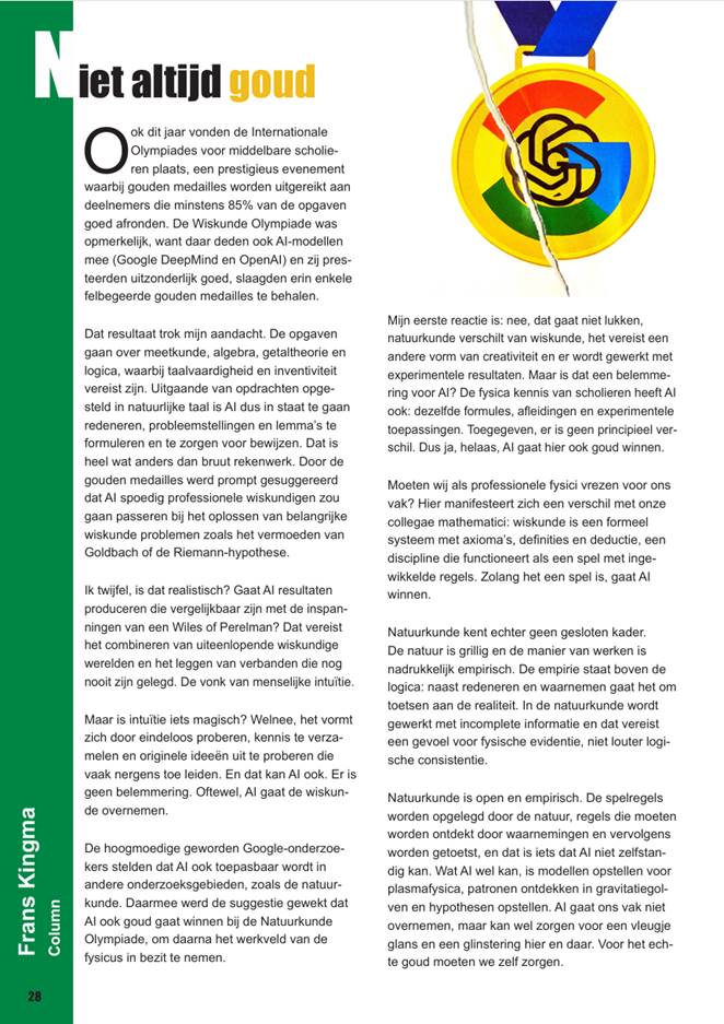 De opkomst van kunstmatige intelligentie roept vragen op over de toekomst van ons vak: is er nog een perspectief voor de natuurkunde? Daarnaast is er het aloude fenomeen: bedrog. Of het nu in de propaganda, letterkunde of wetenschap is, misleiding is van alle tijden en zal ons wellicht nooit meer verlaten.